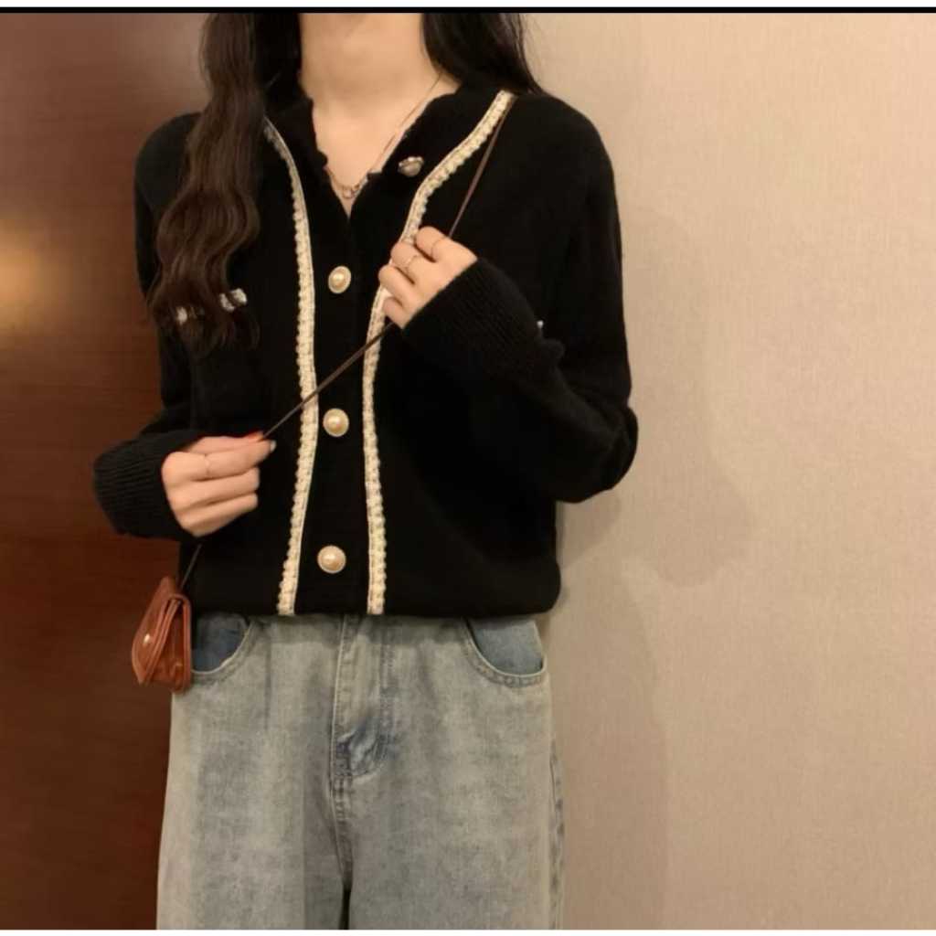 Gudang - Cardigan Wol Rajut Korean Style List Full kancing Mutiara Kekinian