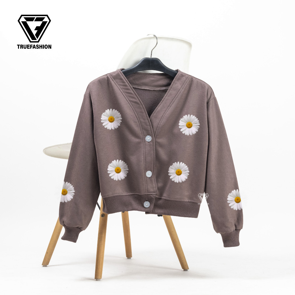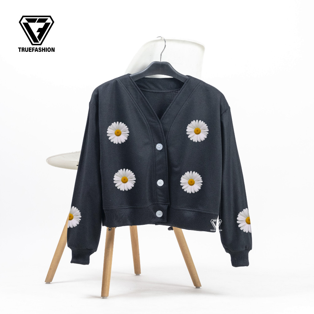TF - JENNIE DAISY FLOWER Cardigan Crop Wanita Korean Style Lalisa Kardigan Sweater
