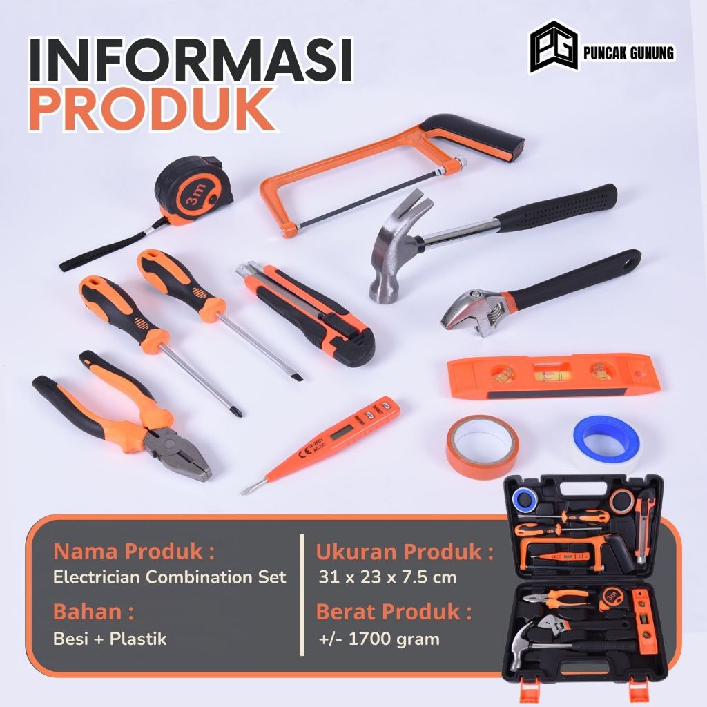 Set Box Peralatan Tukang 13 in 1 Kunci Obeng Tang Palu Meteran Toolbox Lengkap - G6A4