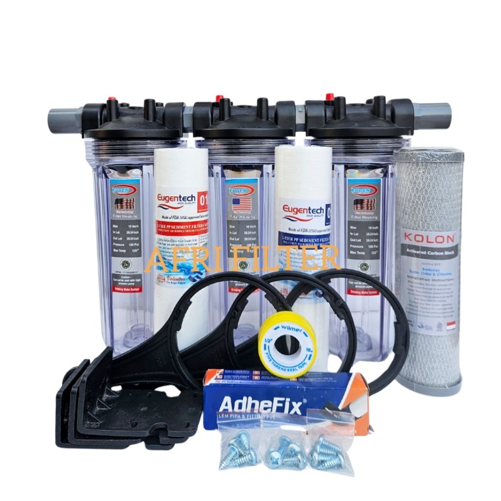 Paket EUGEN 3 Saringan/ Filter Air Siap Palai (Clear 10" drat 3/4" SSC)