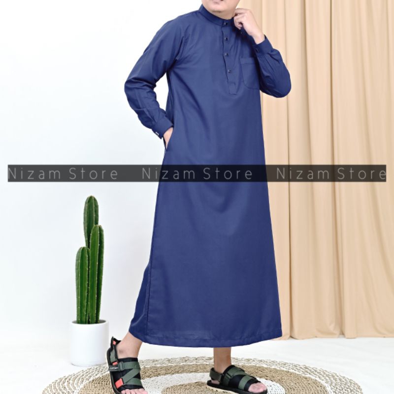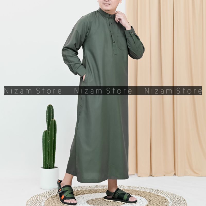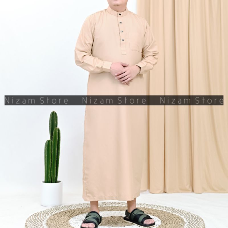 Jubah Saudi Viral Polos Lengan Manset Kancing Snap Gamis Pria Panjang Muslim Haji Umroh