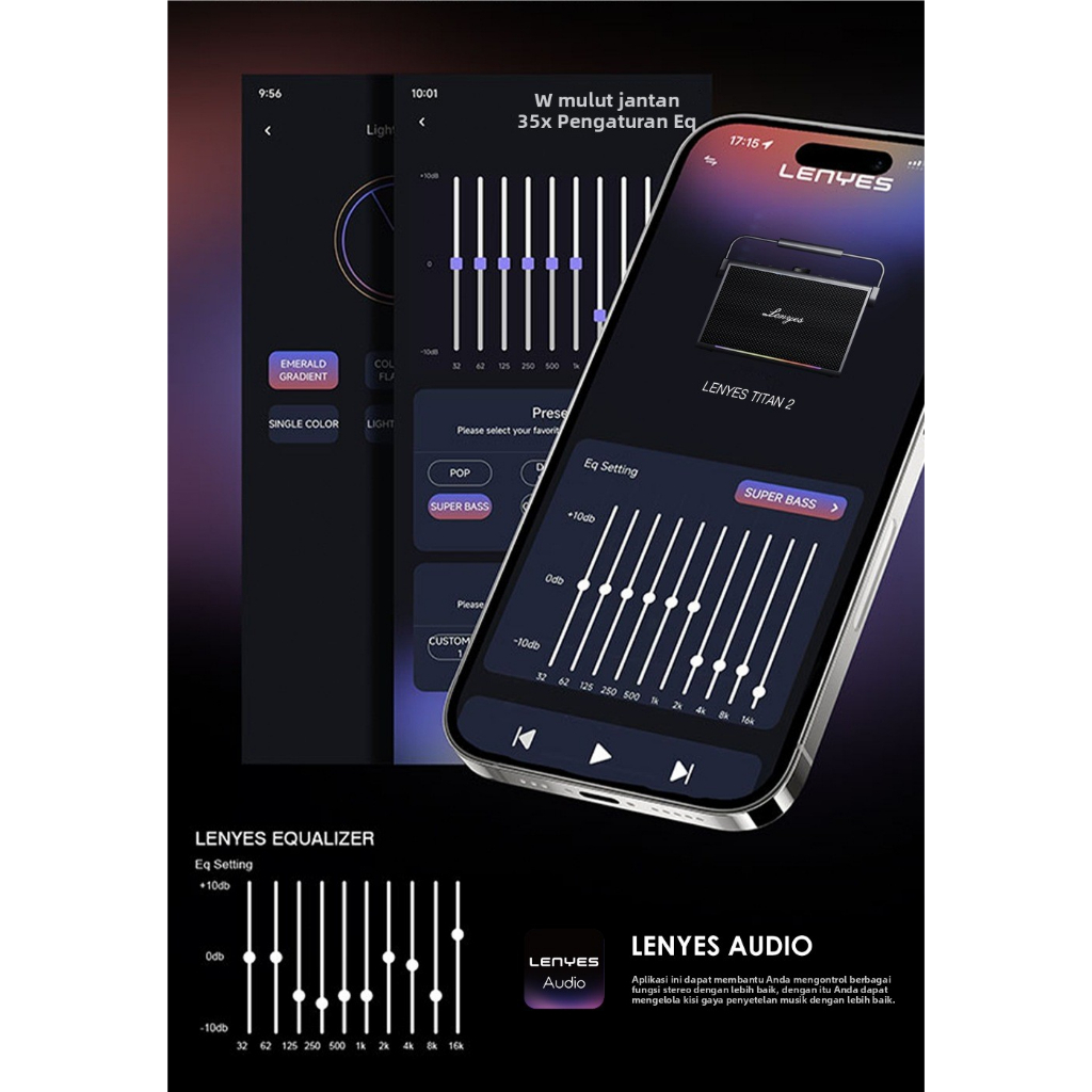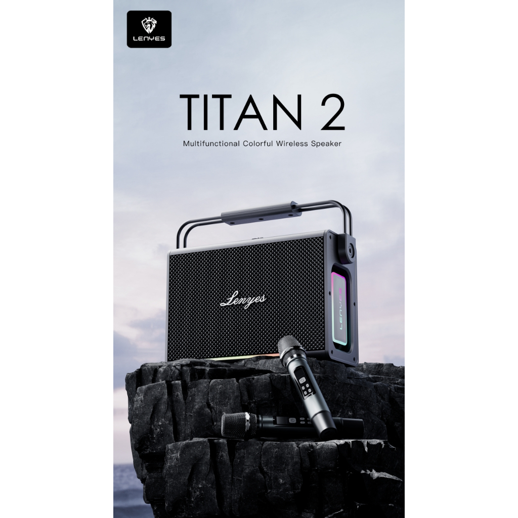 LENYES TITAN 2 200W Outdoor KTV Wireless Speaker + Microphone Karaoke Bluetooth 5.3 High Power Bass Subwoofer TWS RGB Li
