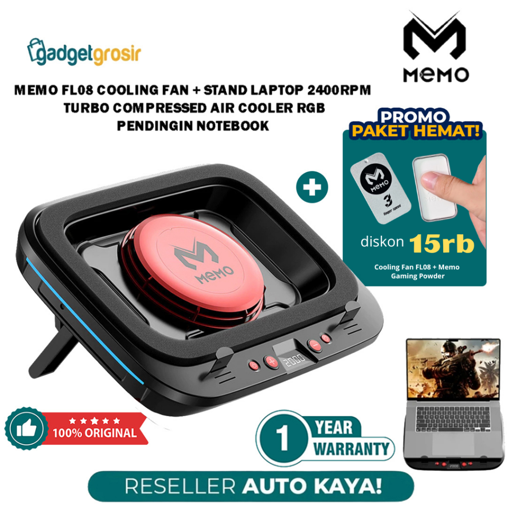 Memo FL08 Cooling Fan Laptop 2400RPM Turbo Compressed Air Cooler RGB Stand Pendingin Notebook