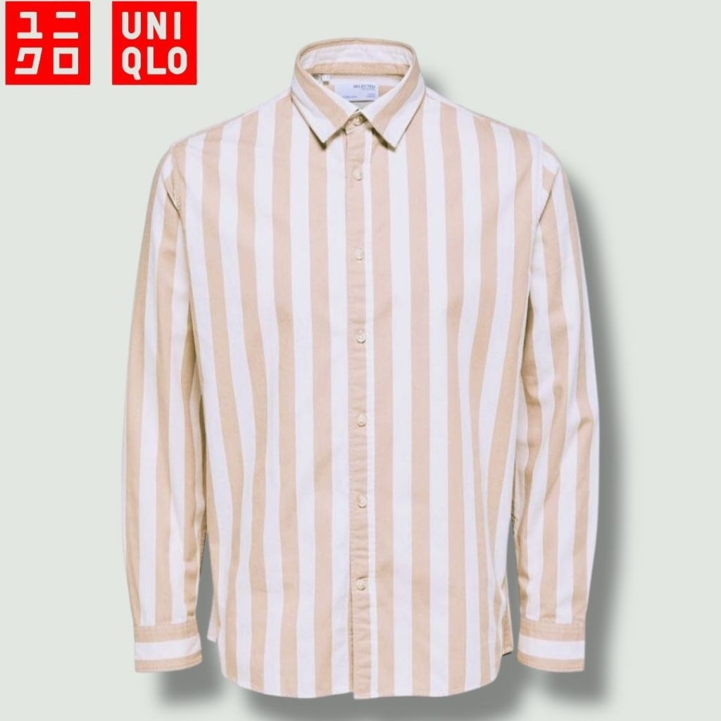 Kemeja Pria dewasa Lengan Panjang Motif Salur Besar-Kecil,Kemeja Panjang Pria Stripe Bahan 100 PERSEN full Katun Adem,Kemeja Kasual Pria