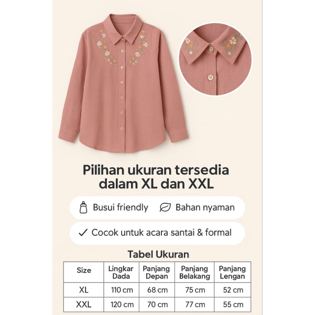 Kemeja Luna Bordir Motif Bunga - Atasan Wanita Blouse Linen