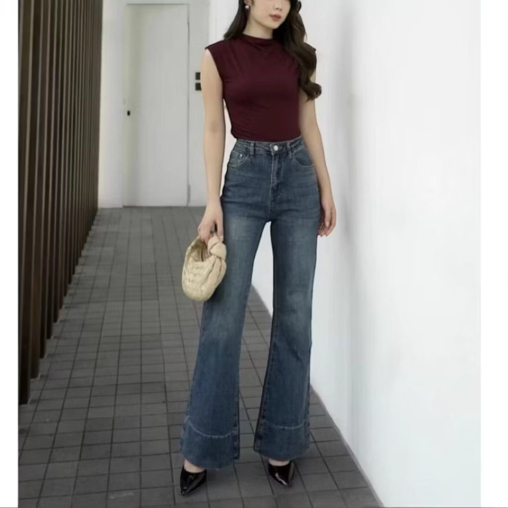 CAYRA.ID -Jennie-Highwaist Cutbray Jeans Celana Flare Panjang Stretch Wanita Retro Vintage Lipat Bawah-Celana Terbaru