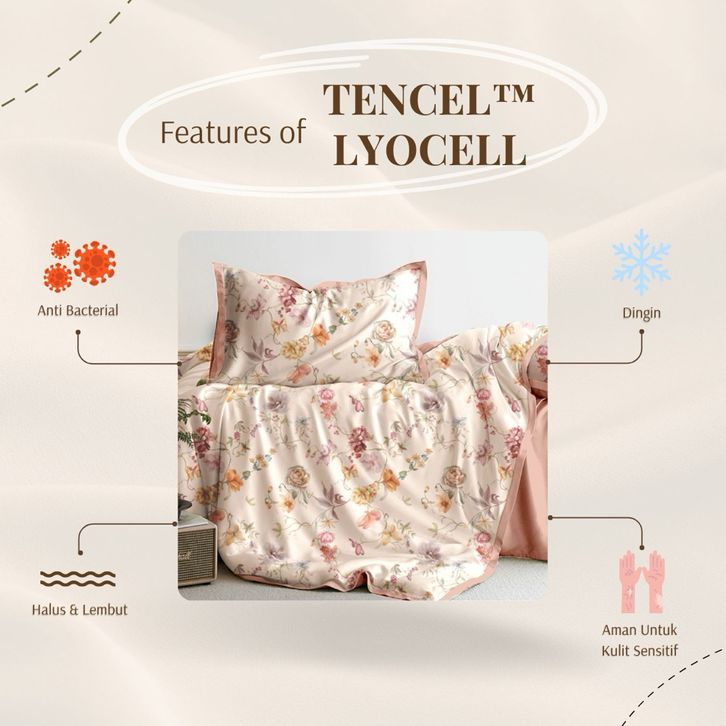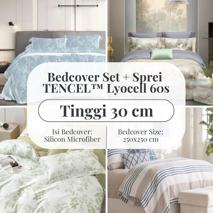 Bedcover Set + Sprei Uk 180 & 160 Tinggi 30 cm - TENCELTM Lyocell 60s Isi Microfiber Bantal Karet