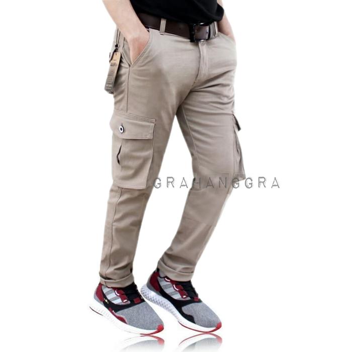 GRAHANGGRA CELANA CARGO PANJANG COTTON TWILL STRETCH SLIMFIT - ARMY GREEN, S