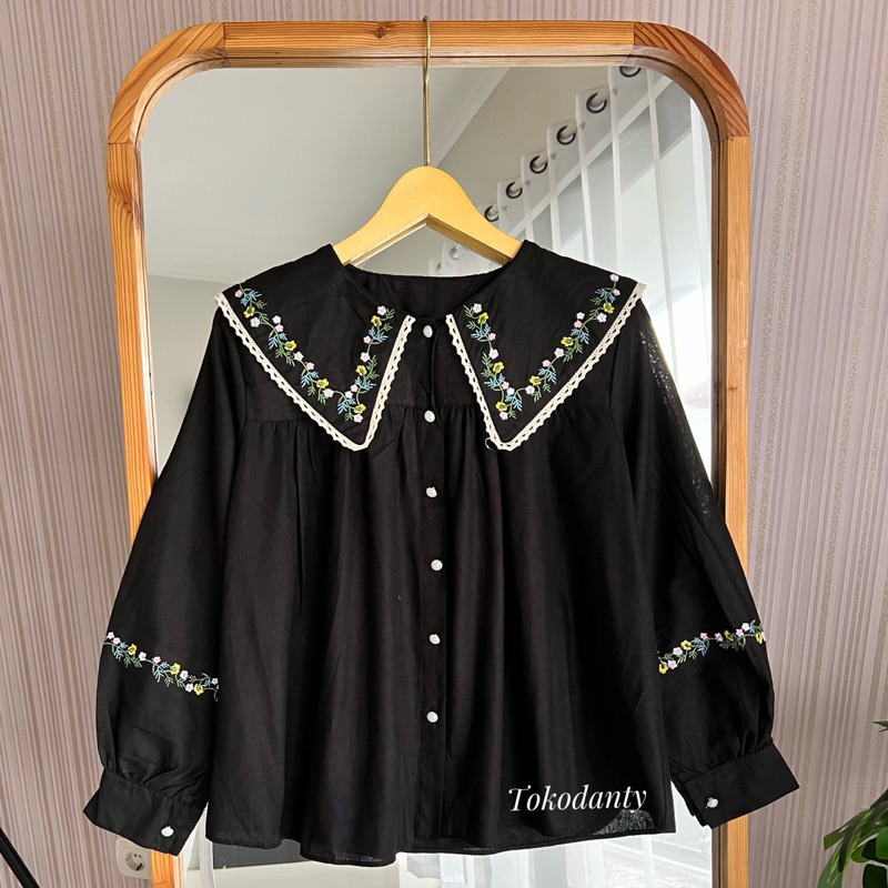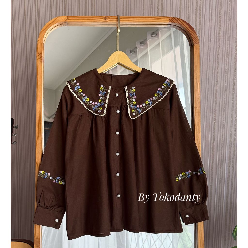 Atasan Kemeja Linen Bordir Lengan Panjang - Lumina