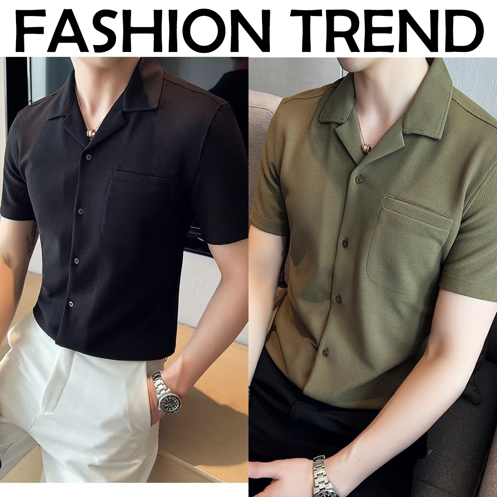 Kemeja Casual Pria Polos Tekstur Waffle Kualitas Import Korean Style Lengan Pendek Kemeja Kantor