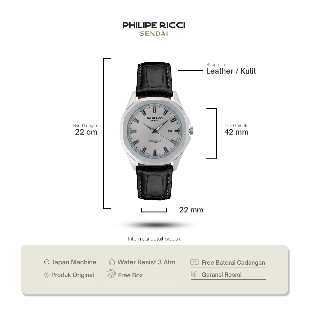 Philipe Ricci Sendai Jam Tangan Pria Kulit Hitam Terbaru 100 PERSEN Ori Water Resist 6481 Men Watches