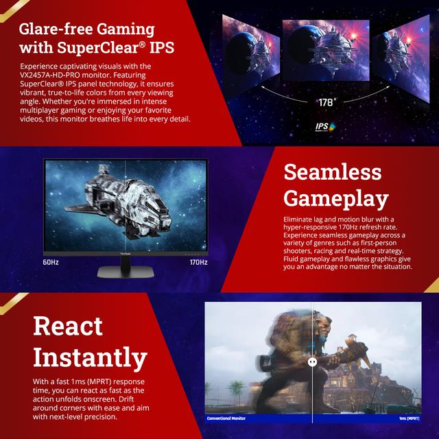 MINITOR VIEWSONIC VX2457A HD PRO 24" INCH - FHD IPS 170HZ 1MS DP AMD FREESYNC HDR10 EYE PROTECH+