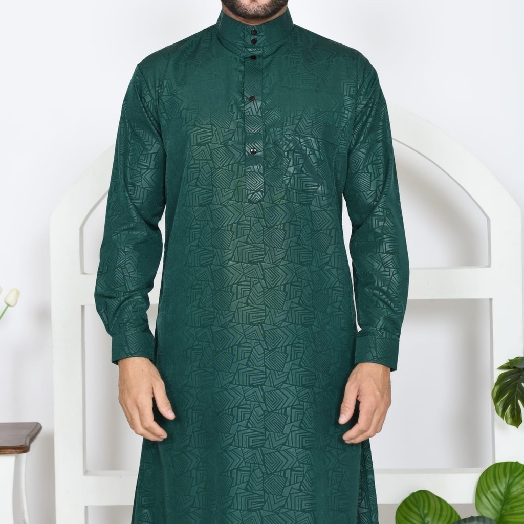 Fourmonth Jubah Embos Slimfit Motif Etnic Lengan Panjang Manset