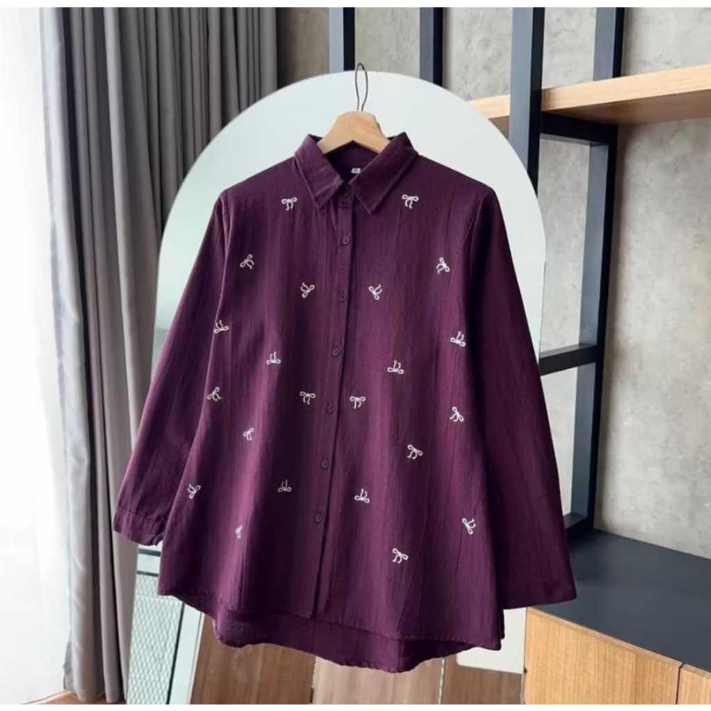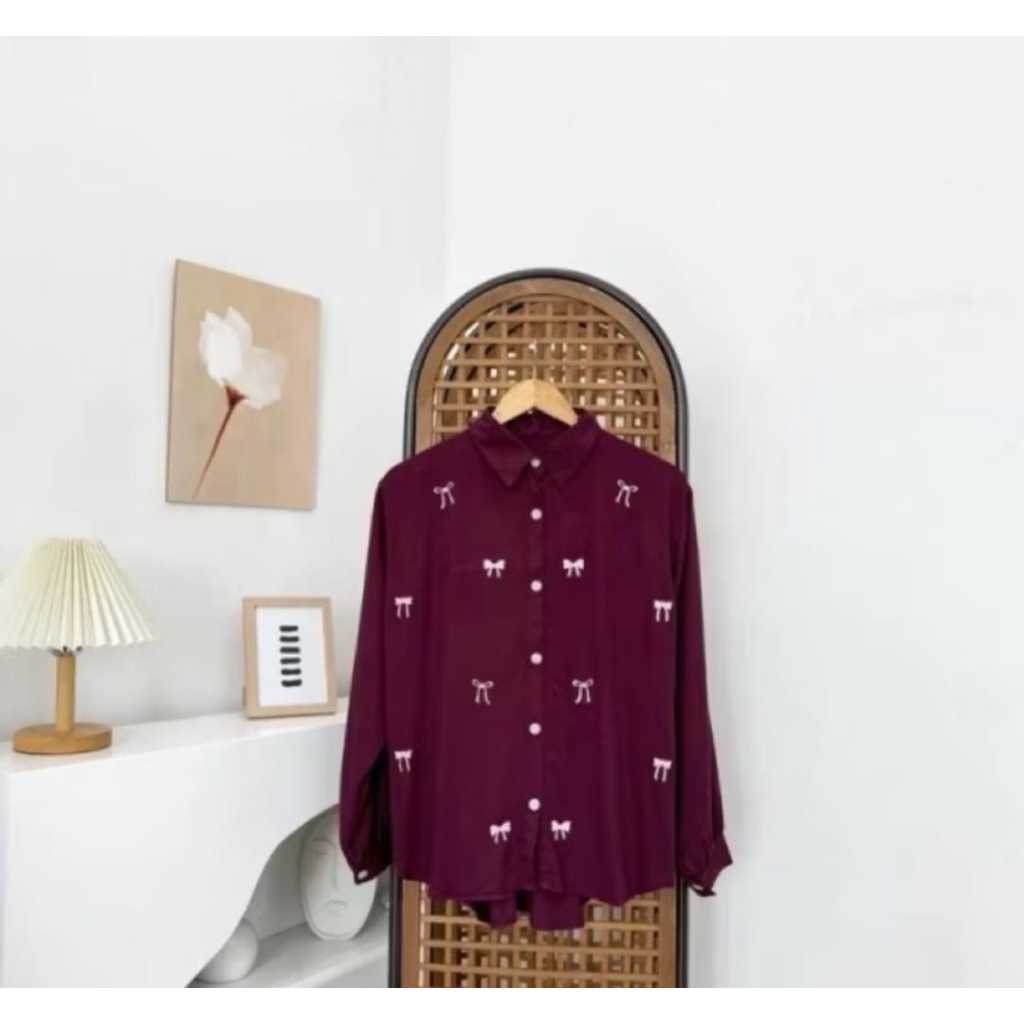 Baju Atasan Wanita Terbaru Bordir Pita Kecil Kemeja Wanita Bahan Adem Jumbo