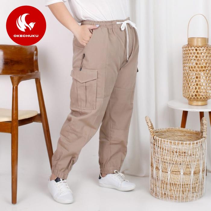 OKECHUKU DIVA BIG CELANA PANJANG CARGO BIG SIZE CELANA CARGO OVER SIZE - KREM, XXXL
