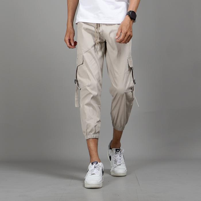 OKECHUKU FIRMAN CELANA CARGO PRIA 3/4 CARGO JOGGER ANKLE CARGO SLIMFIT - KREM, SIZE 30