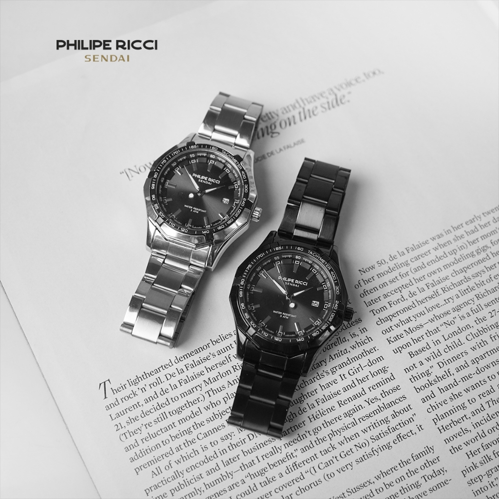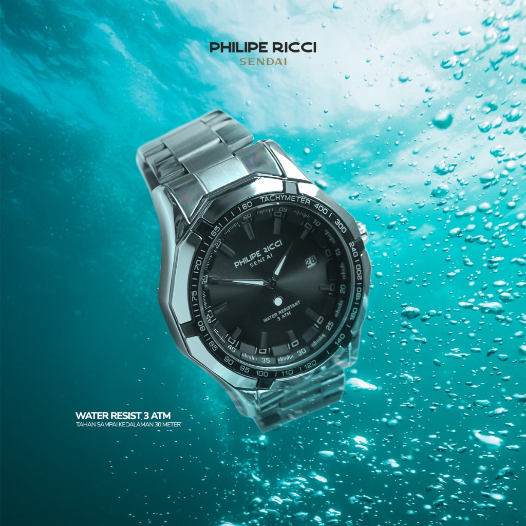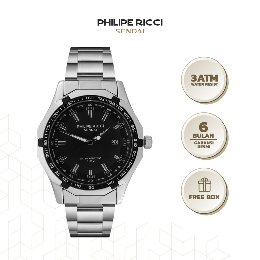 Philipe Ricci Sendai Jam Tangan Pria Rantai Besi Water Resist 100 PERSEN Ori Keren Modern 6342 Free Box