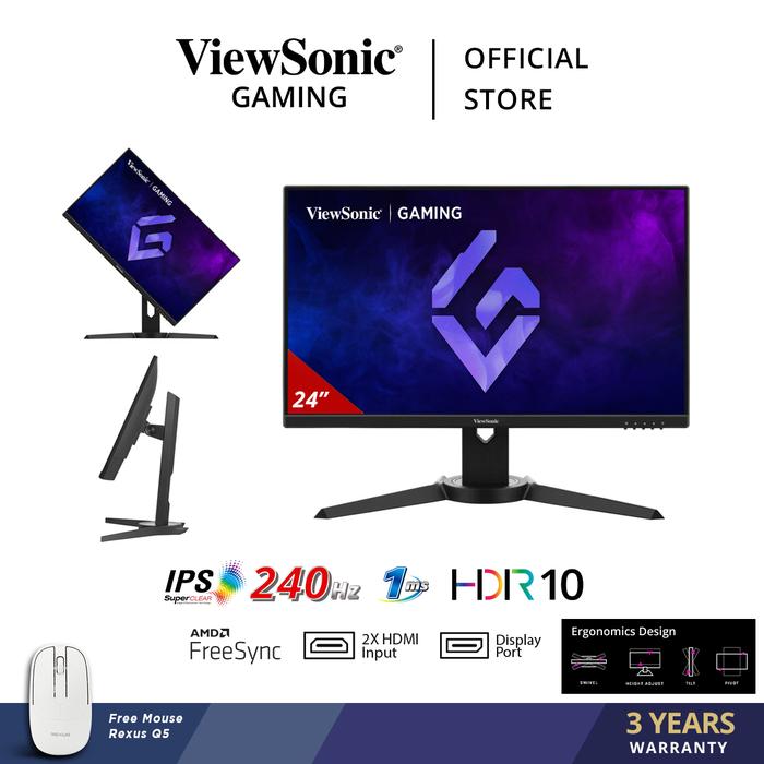 MONITOR VIEWSONIC XG2409A / 24 INCH / 1920X1080 / HDMI 1.4X2, DP / NO SPEAKER / IPS / 100X100/ 240HZ / AMD FREESYNC /ERGONOMICS