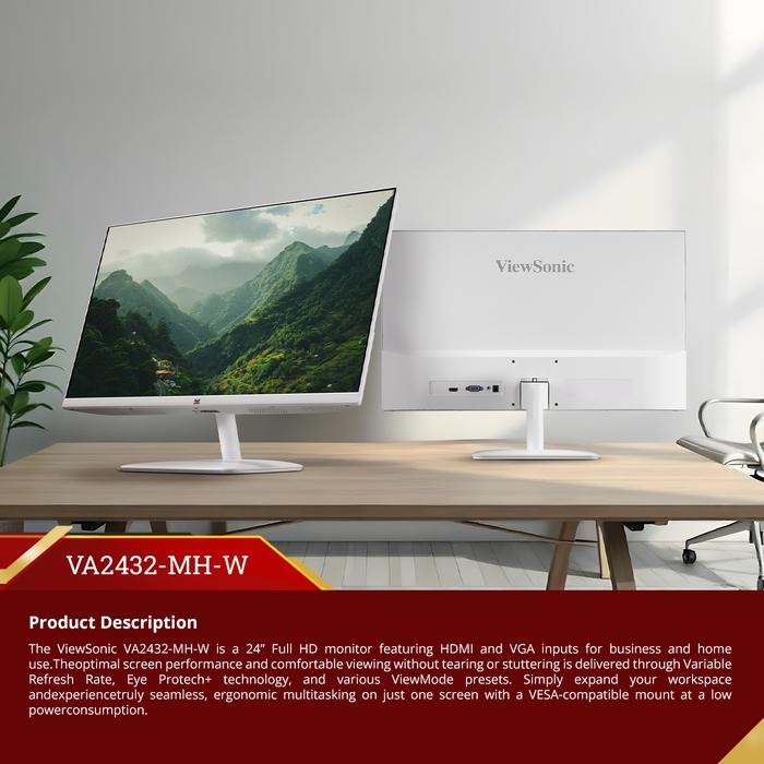 VIEWSONIC VA2432-MH-W / 24 INCH / 1920X1080 / VGA, HDMI 1.4 / SPEAKER / IPS / 75X75 / 100HZ