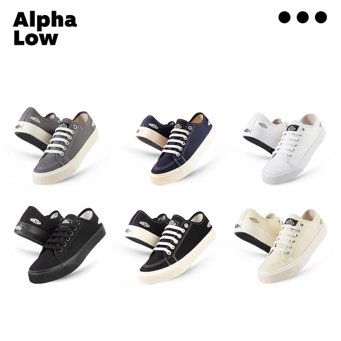Sepatu Ventela Alpha Low Wanita Pria Casual Shoes Ventela Official Canvas Black Putih Sneakers Full - Putih, 36