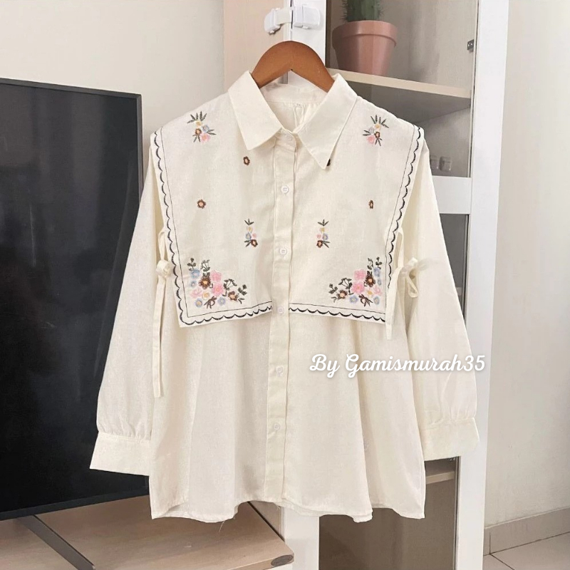 Narika Shirt - Ukuran S M L XL XXL XXXL 5L - Kemeja Jumbo - Atasan Wanita Jumbo Kekinian Bahan Linen Ld 140 130 120 110 Blouse Terbaru Vest Depan Belakang Putih Hitam Latte Burgundy