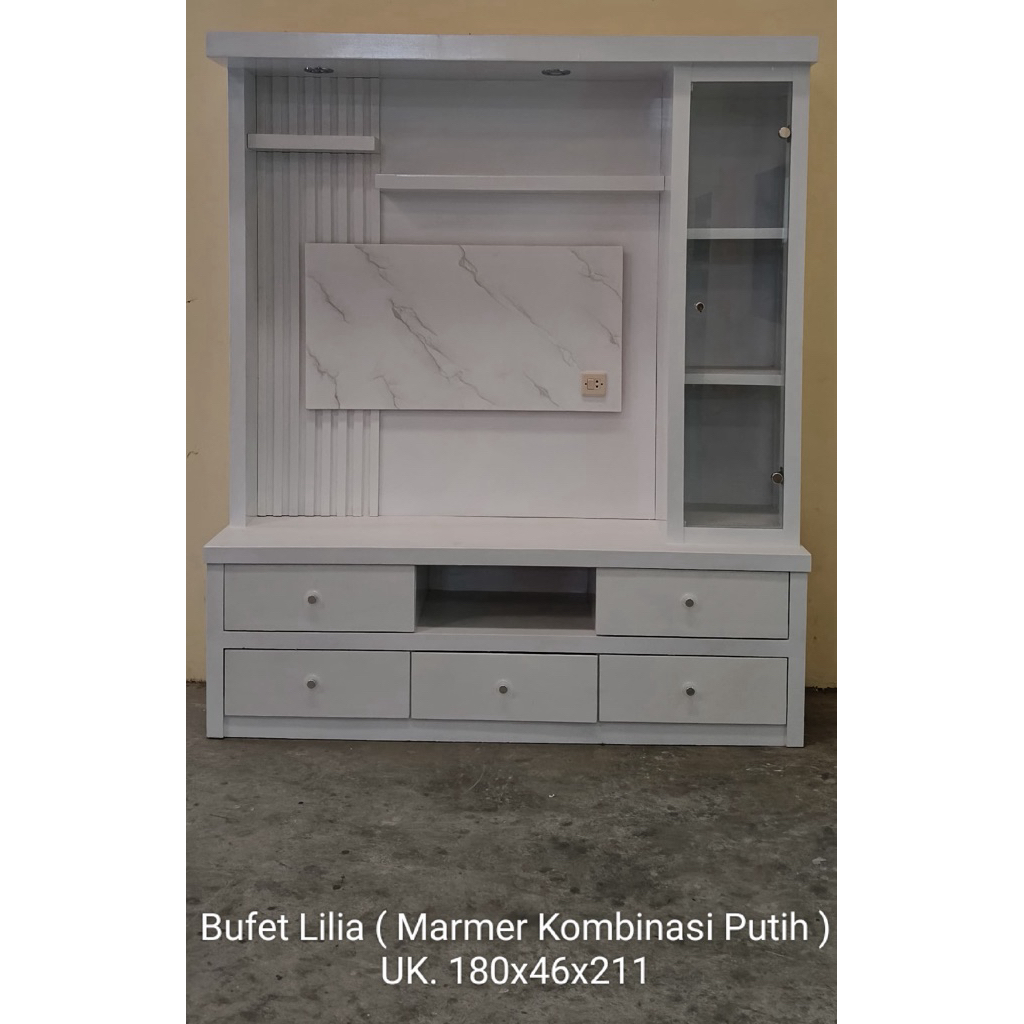 Bufet Backdrop TV Minimalis Lilia | Bufet Pajangan TV | Rak TV Minimalis Modern