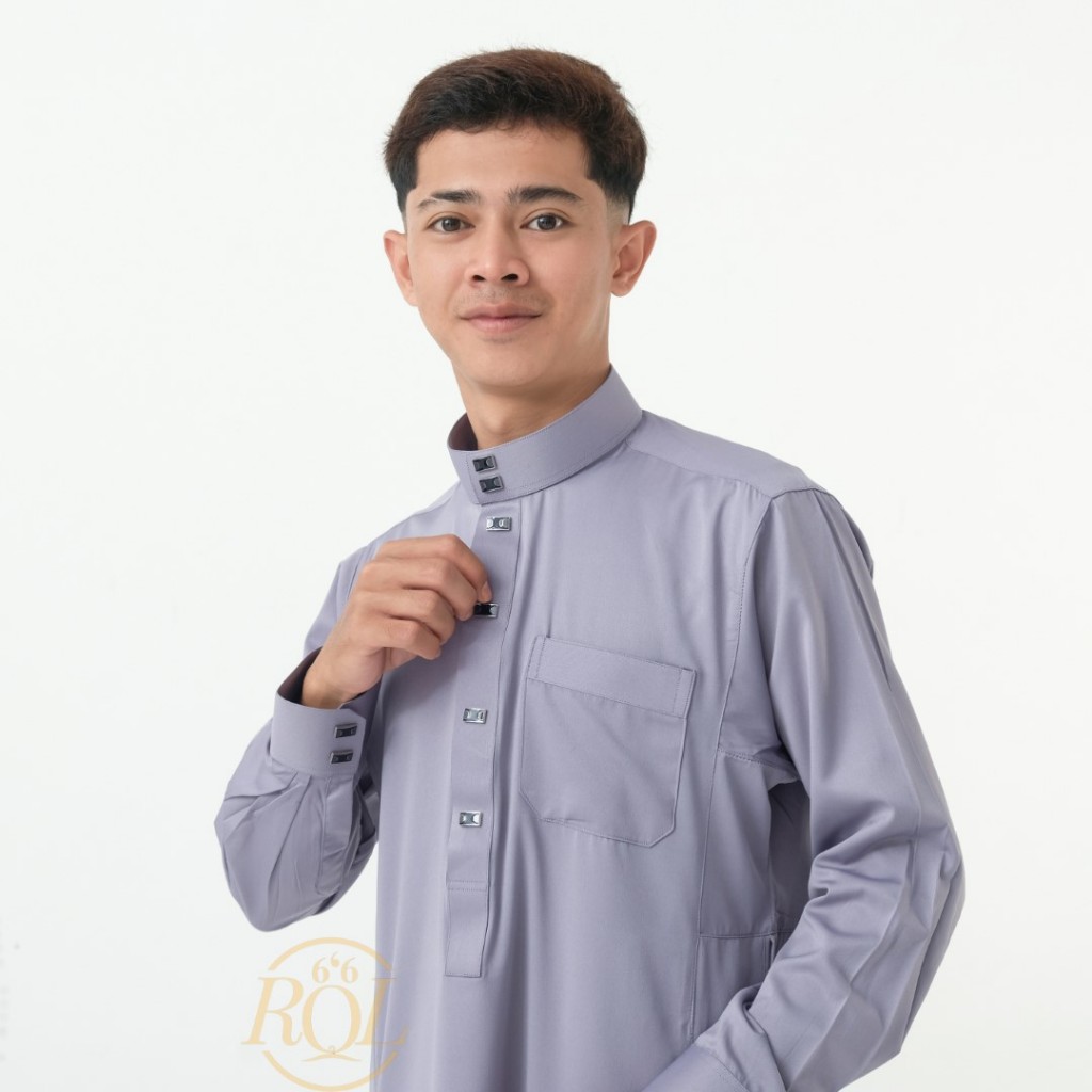 Raqilla - Jubah KAREEM Silver S/M/L/XL Bahan Polymicro | Baju Gamis Jubah Pria Muslim Dewasa Lengan Panjang Kancing Manset di Lengan | Baju Shalat Lebaran Pengajian Jum'atan