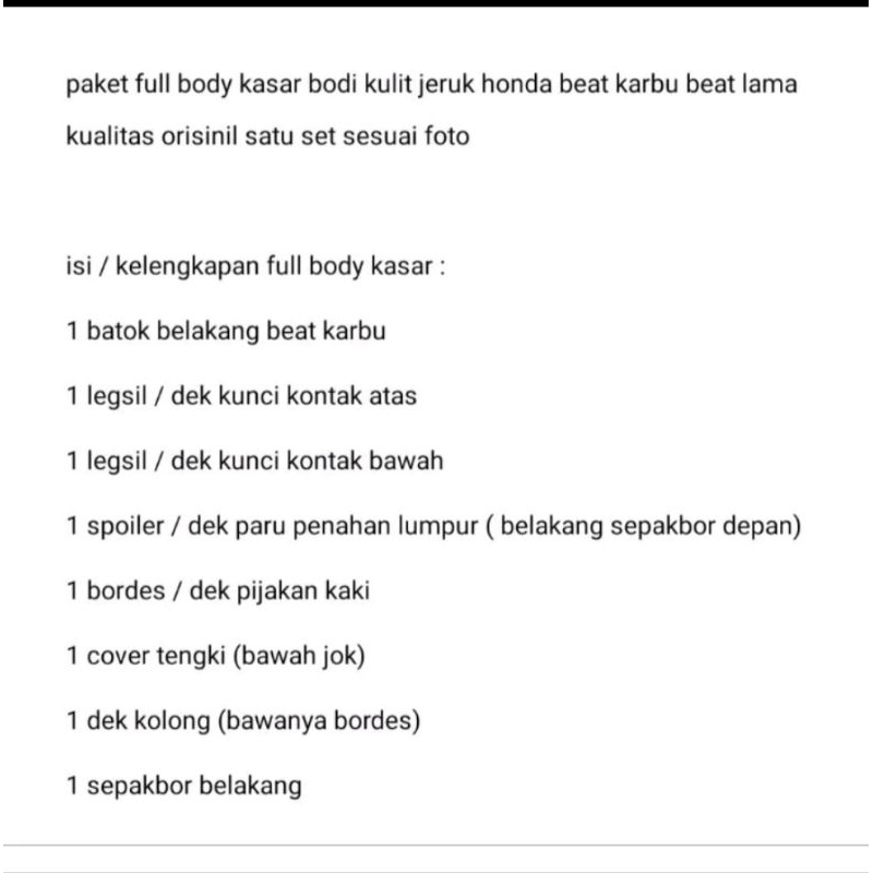 Paket Full Body Kasar Honda Beat Karbu Lama Old 2008 2009 2010 2012