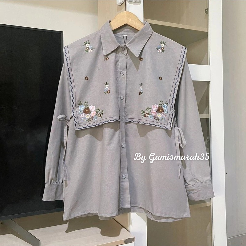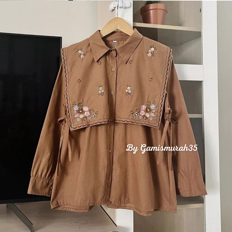 Narika Shirt - Ukuran S M L XL XXL XXXL 5L - Kemeja Jumbo - Atasan Wanita Jumbo Kekinian Bahan Linen Ld 140 130 120 110 Blouse Terbaru Vest Depan Belakang Putih Hitam Latte Burgundy