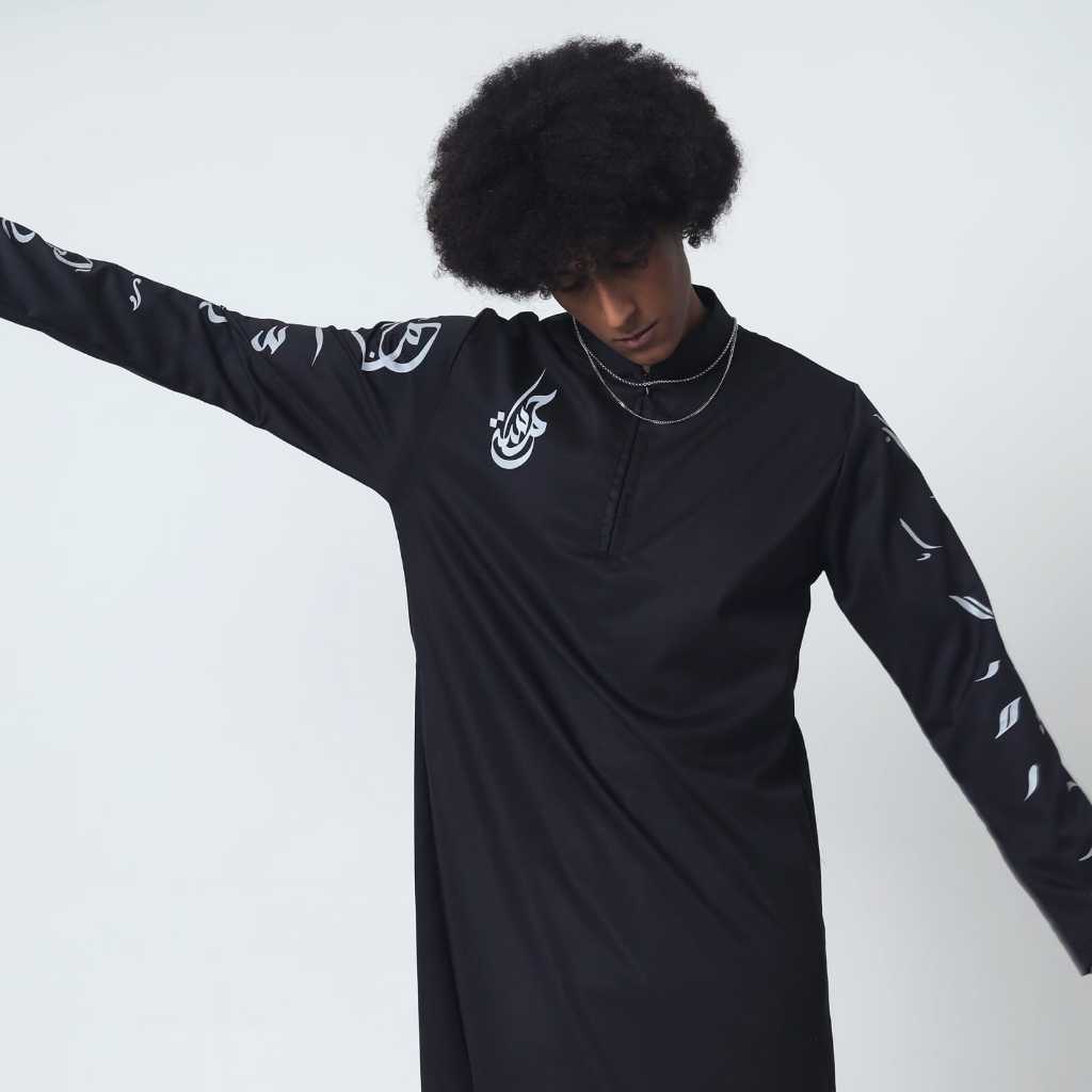 HAMASAHLABELL - GAMIS KALCER HITAM PUTIH DEWASA GAMIS PRIA REFLECTIVE JUBAH PRIA SLIMFIT LINE MENYALA