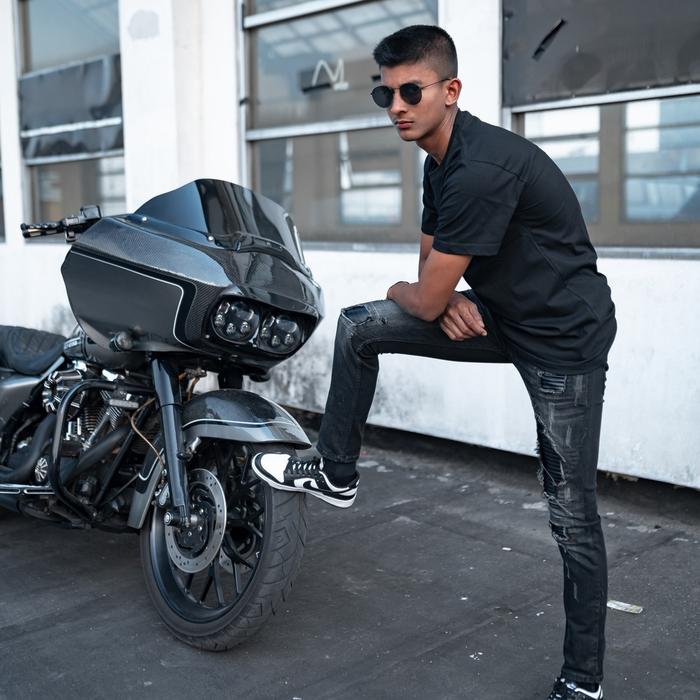 CHICKCOOL - BLACK SKIN STREET LEATHER DENIM - Celana Jeans Pria Skinny Strech Ripped Tambal Leather