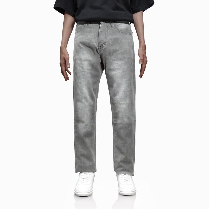 Celana Jeans Standar Regular Fit Light Grey Abu Muda Panjang Pria Denimic Nyaman