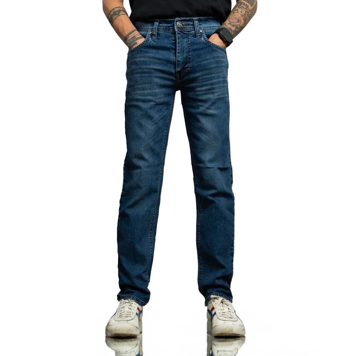 Celana Jeans Slim Fit Indigo Blue Panjang Pria Stretch/Melar Denimic Nyaman Biru Navy