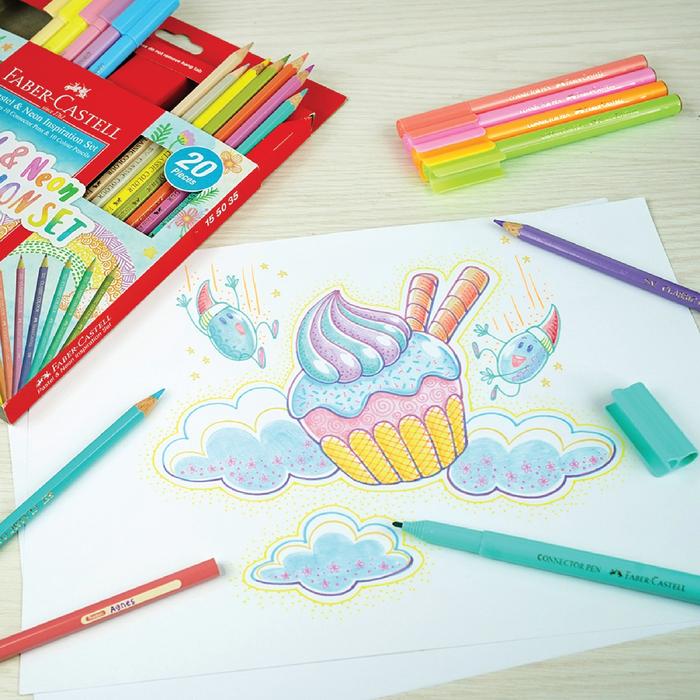 Faber-Castell Spidol Warna Anak Kreatif Connector Pen Pencil Neon Pastel special Inspiration set - Neon & Pastel