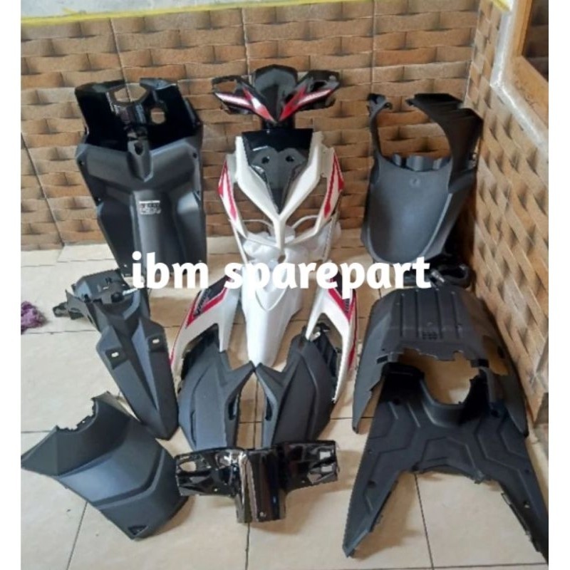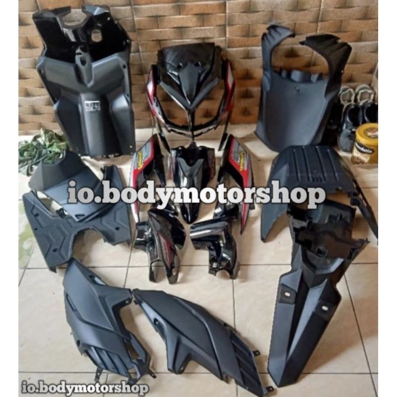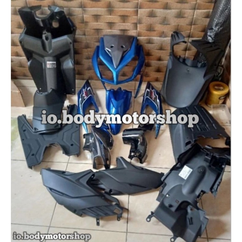 Cover body cover body full body kasar halus plus lampu" lengkap Honda Vario techno 110 cbs karbu warna hitam putih biru