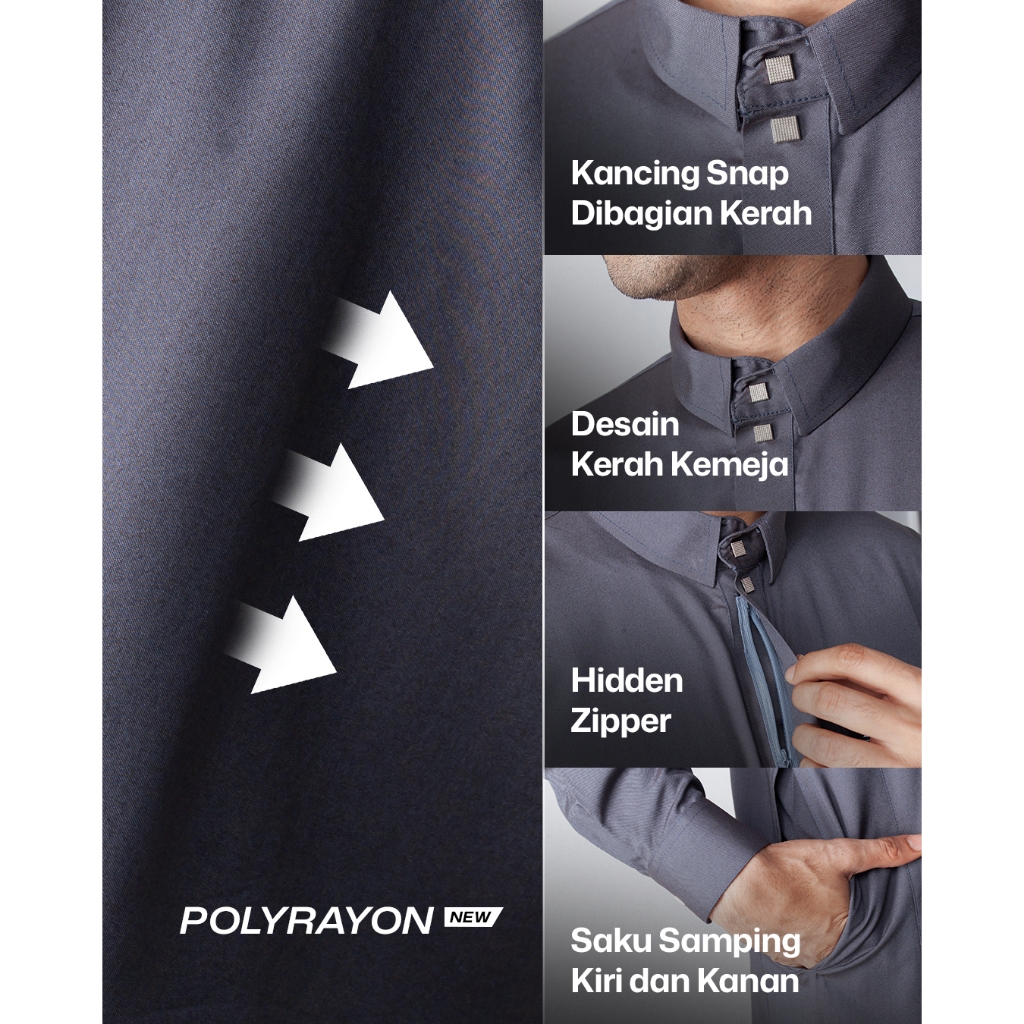 Hurim - Gamis Jubah Pria Lengan Panjang Slimfit Bahan Polyrayon Premium Arsan Series