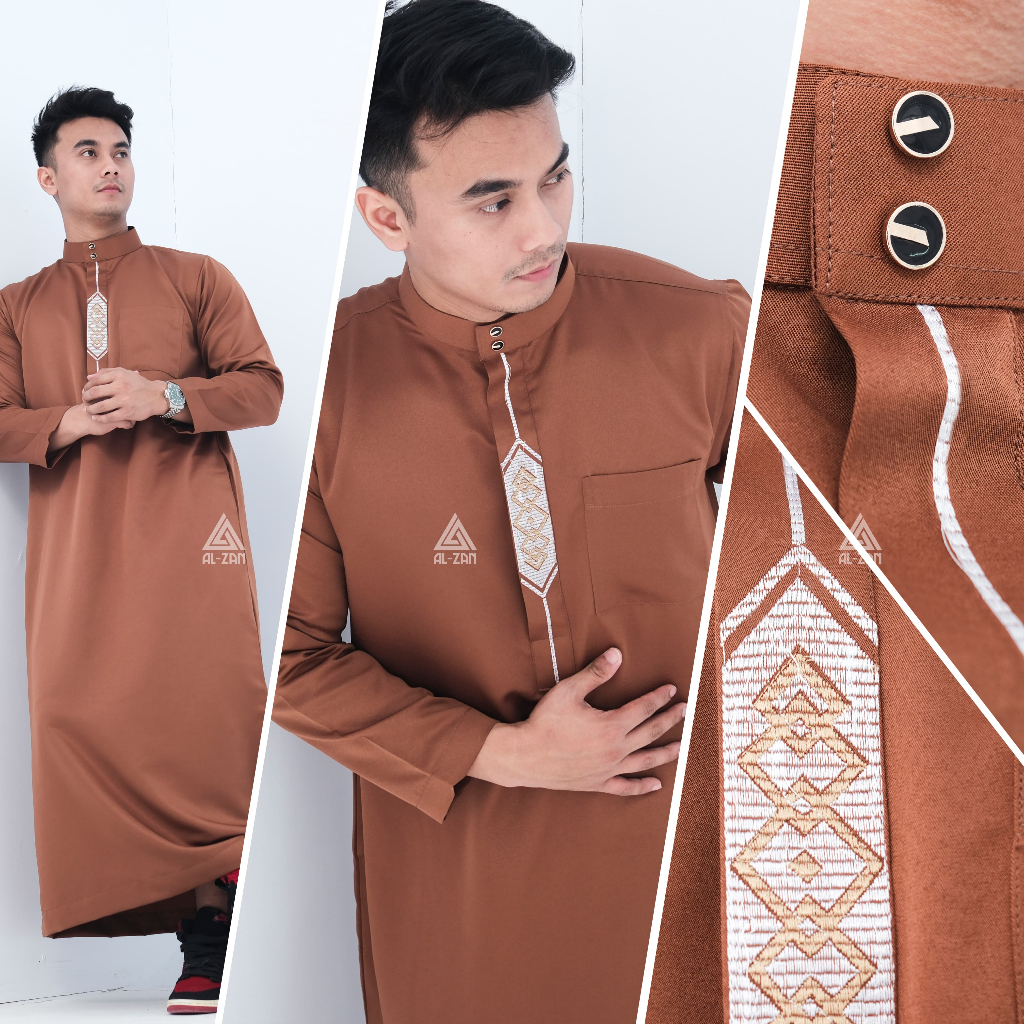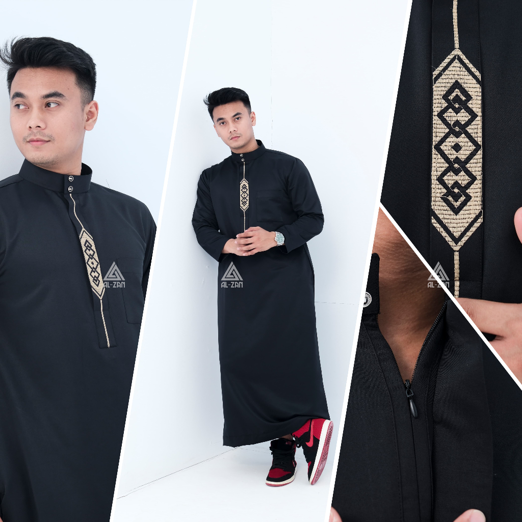 Jubah pria muslim gamis pria muslim lengan panjang bordir jubbah dewasa katun toyobo hitam putih busana muslim pria model terbaru