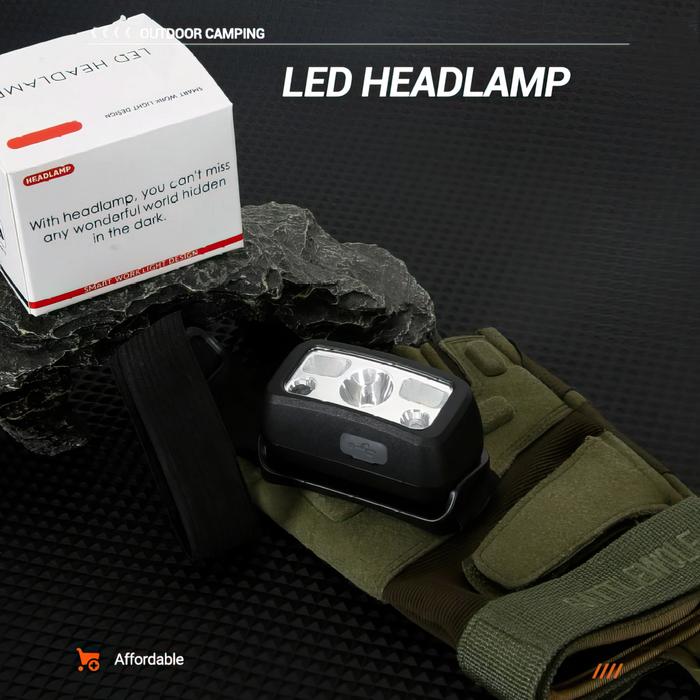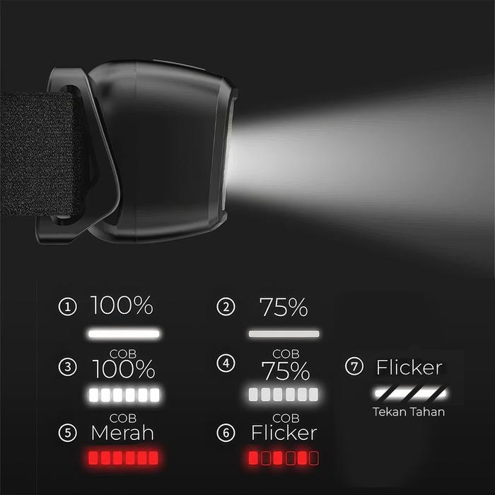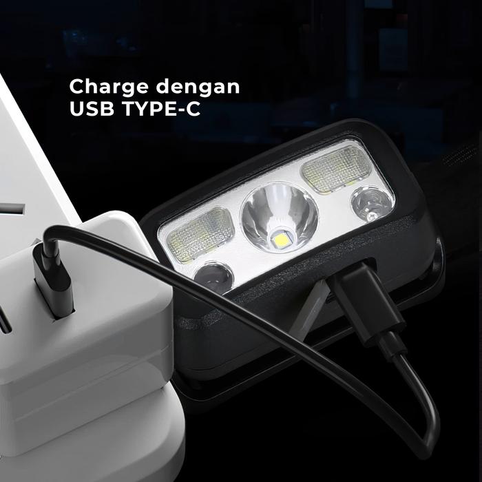 SUKSESTECH HEADLAMP SENTER KEPALA MINI MEMILIKI 7 MODE CAHAYA BERWARNA PUTIH DAN MERAH FREE USB TIPE C W004 - HEADLAMP