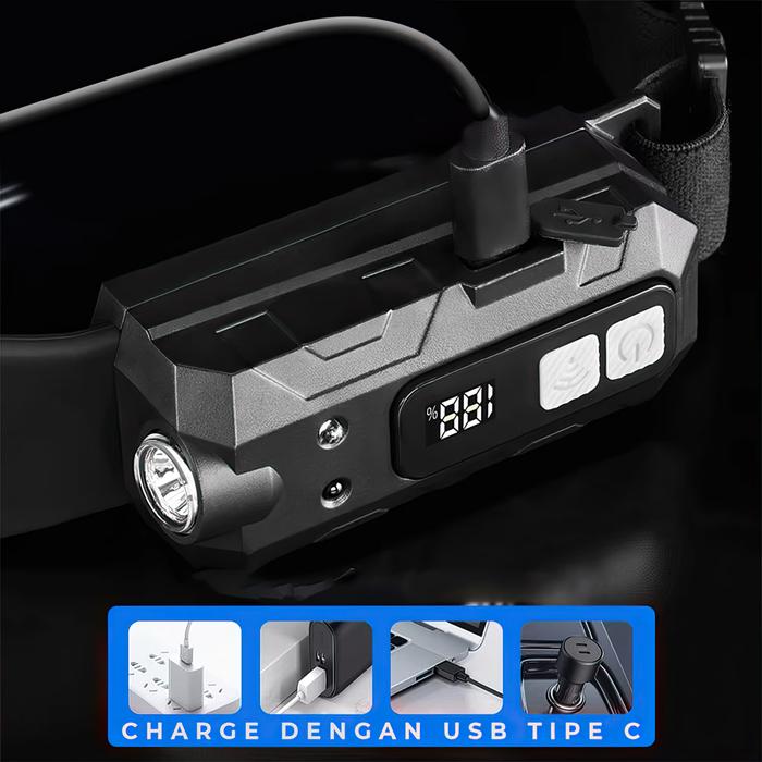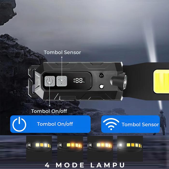 SUKSESTECH HEADLAMP SENTER KEPALA SENSOR 4 MODE CAHAYA TERANG XPE+COB FREE USB CH-6105 - HEADLAMP