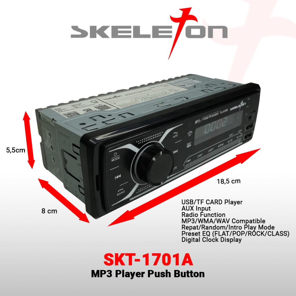 Skeleton Head UnitRadio Mp3 Usb Bluetooth Single Din SKT-1701