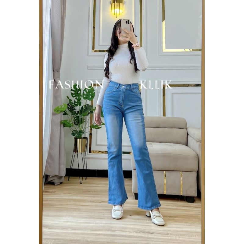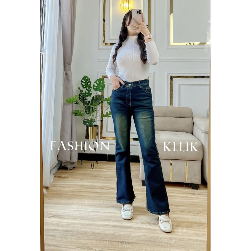 Highwaist Cutbray Jeans Wisker Spray Wanita Fashion Terbaru Celana Korean Style Nyaman Kekinian