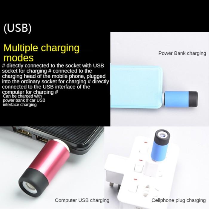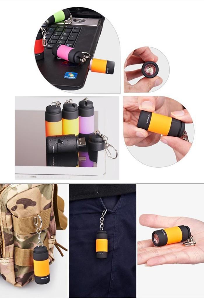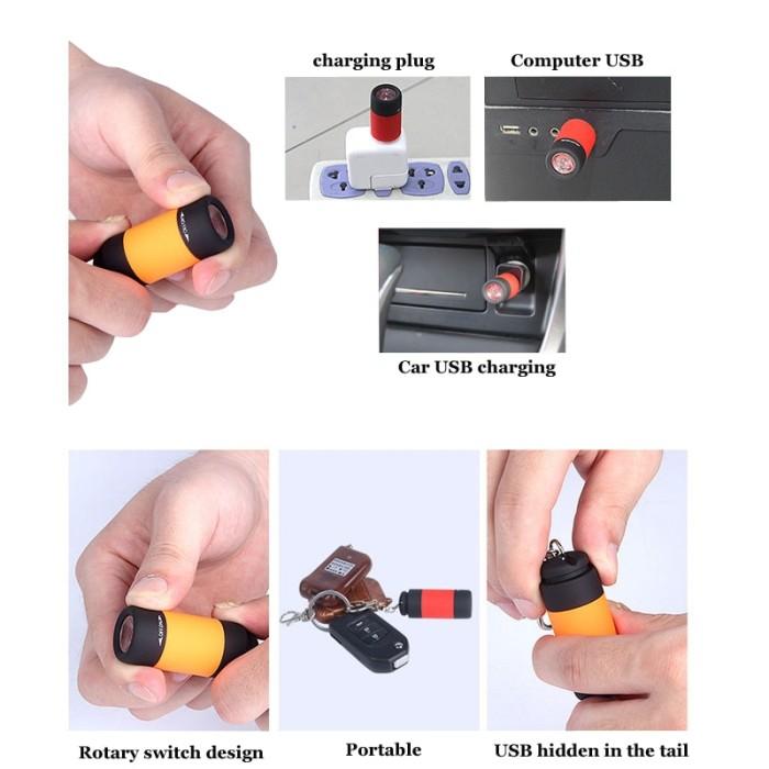 JUAL LED MINI SENTER TORCH GANTUNGAN KUNCI RECHARGE USB WATERPROOF - HITAM