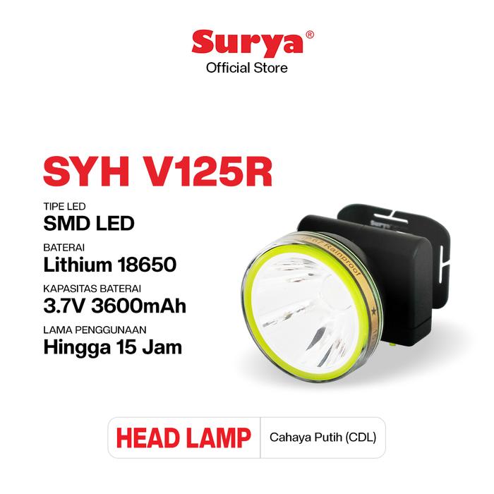 SURYA LAMPU SENTER KEPALA LED SYH V125R RECHARGEABLE