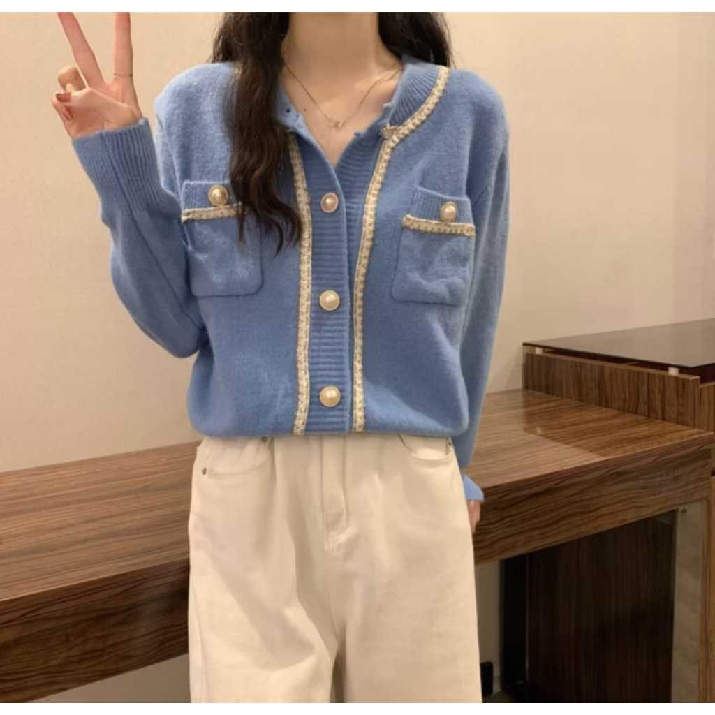 Gudang - Cardigan Wol Rajut Korean Style List Full kancing Mutiara Kekinian