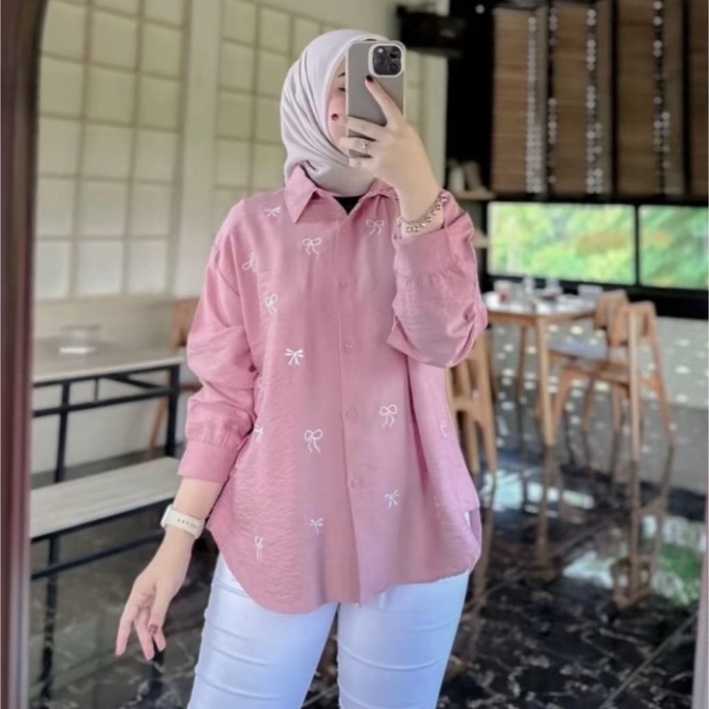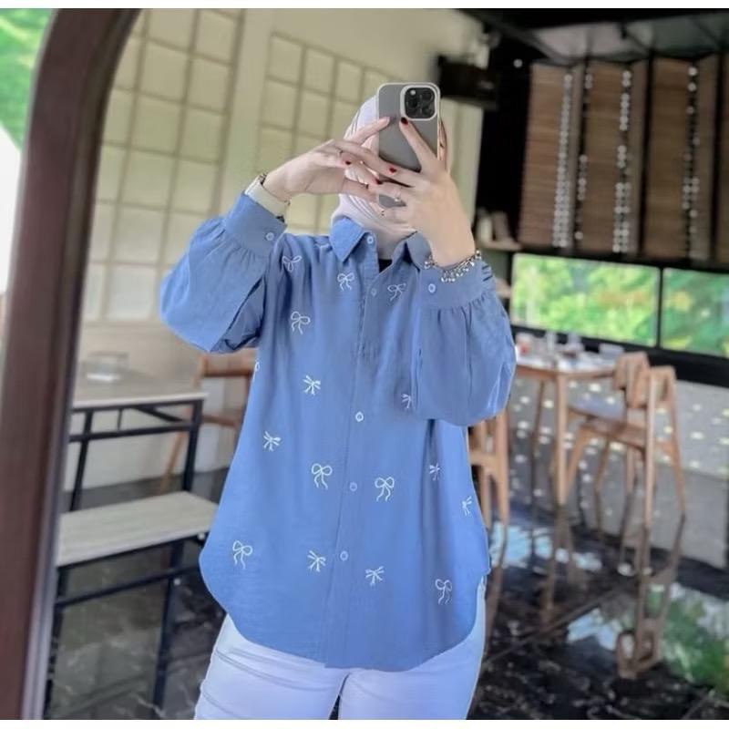 Blouse Wanita motif Bordir Pita / Kemeja Wanita PURE linen / Atasan Blouse Bordir Korean Style