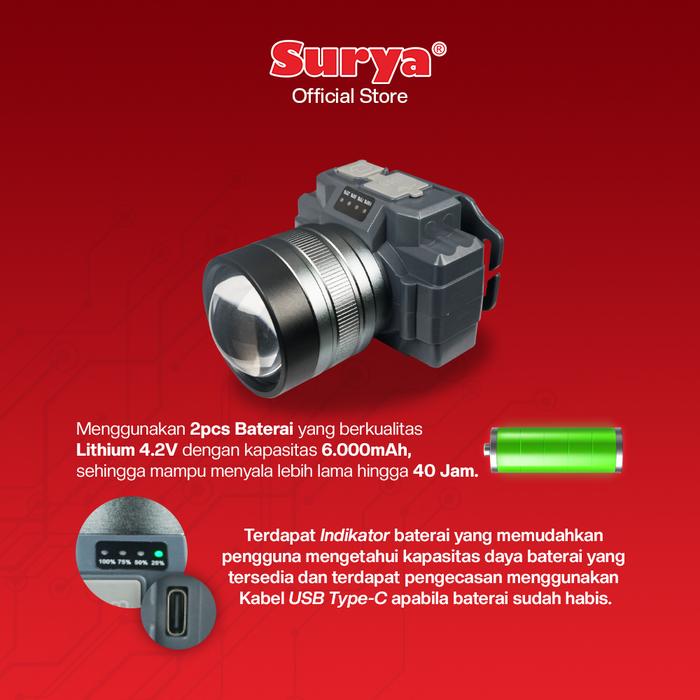 SURYA LAMPU SENTER KEPALA LED SYH T755Z RECHARGEABLE CAHAYA PUTIH