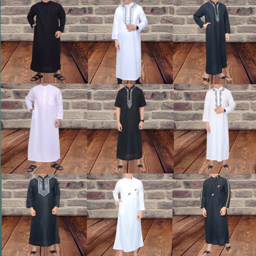 JUBAH PRIA GAMIS PRIA DEWASA REMAJA BORDIR LENGAN PANJANG PENDEK FASHION MUSLIM KEKINIAN