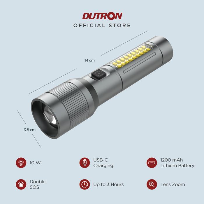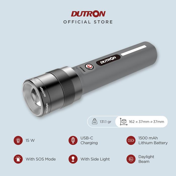 DUTRON PHOENIX SENTER ZOOM LED 5 MODE CAHAYA 15 WATT - SENTER TANGAN DENGAN BATERAI RECHARGEABLE LITHIUM 1500 MAH - PHOENIX
