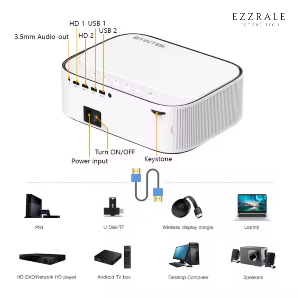 EZZRALE EZS1 550 ANSI FHD 1080p Smart Android Projector 9.0 , Digital Focus, Dolby Sound Effect