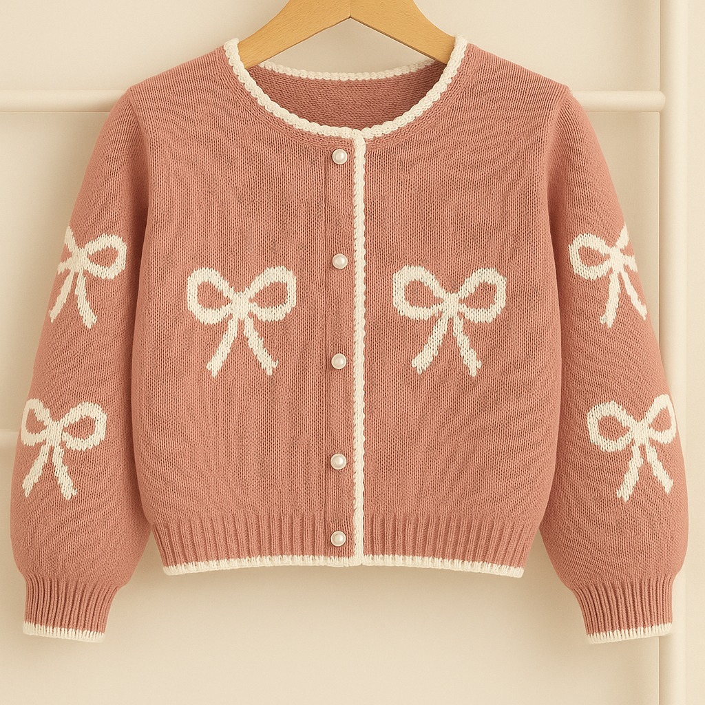 Cardigan Anak Perempuan Cardigan Rajut Anak Perempuan Bahan Rajut PollyCotton – Motif Pita Cantik Shinly Cardy Umur 1-6